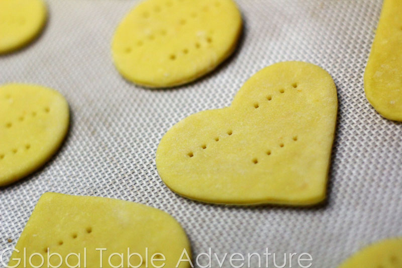 6. Cut out the shapes and prick with a fork so they won't puff up.