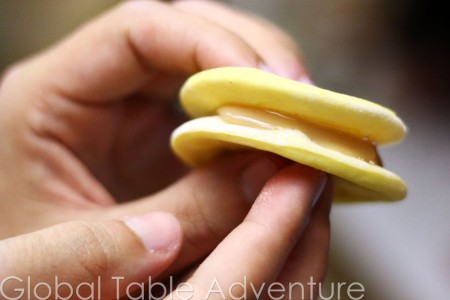 7. Bake for 4-7 minutes. Do not let them brown. They should remain soft and tender. Let cool. Then, spread with dulce de leche. Put two halves together and enjoy, sticky fingers and all. Dust with powdered sugar if desired.