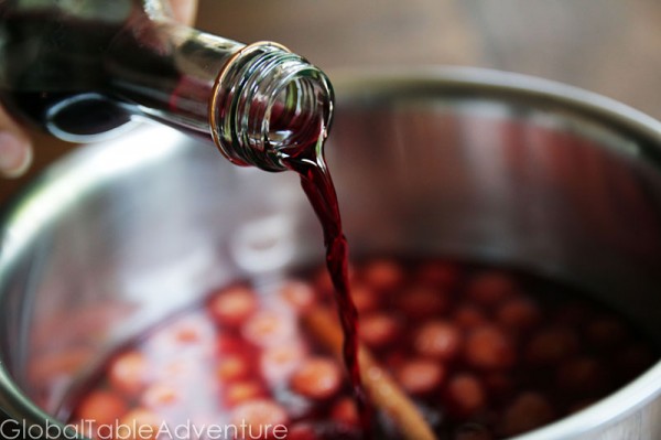 Don’t forget to pour on the wine. It adds flourish and deepens the cherry flavor. You can drink the leftovers, which goes well with our theme of relaxation.