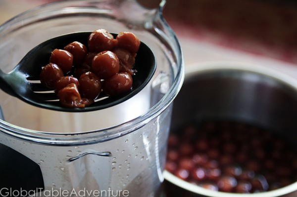 - Add the cherries and 1 1/2 cups of the cooking liquid to a blender. If you don't have quite enough, add a little water or wine.