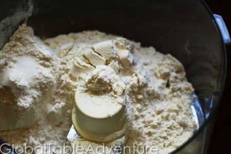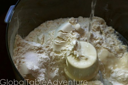 Add flour and salt to a food processor…