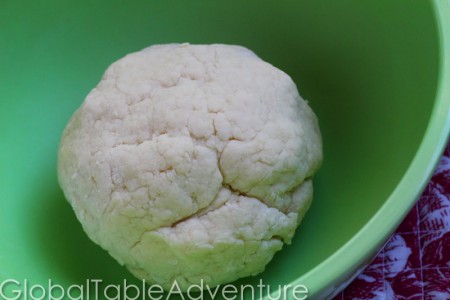 - Add flour and salt to a food processor and add boiling water. Pulse until dough starts to come together. I used my hands to press the shaggy bits into a smooth ball. The dough is not sticky and should not cling to your hands much. Add more water or flour as needed to get the right texture.