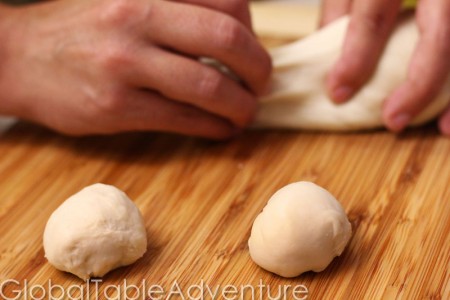 Make small balls of dough (you need two at a time)