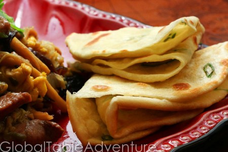 Chinese Pancakes are quick and easy to make… and wonderful for scooping up stir-fry. The key to obtaining the characteristic chewy texture is to use boiling water. Make sure you use a healthy dose of salt to flavor the dough. Serve with Moo Shu Pork.
