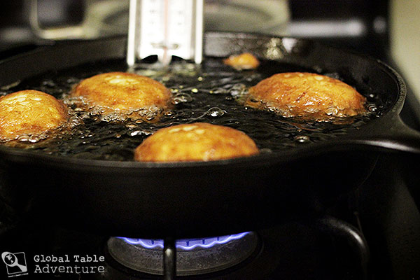 After a quick dip in bubbling oil, the fritters emerge soft in the middle and crisp and nut-brown on the outside.