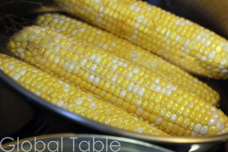 1. Set a pot of water to boil and cook husked corn until done.