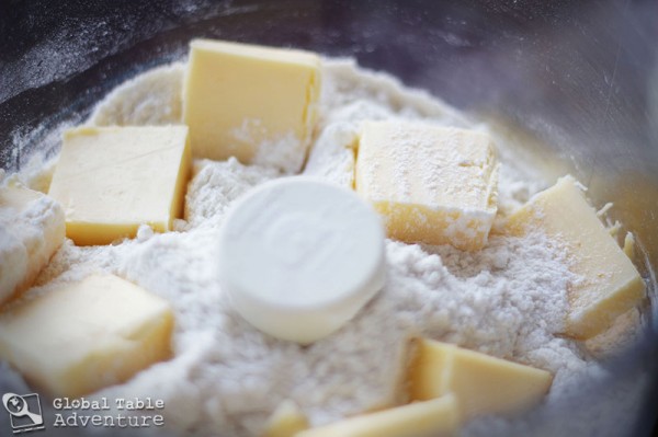 3. Add hunks of butter and pulse until pea sized pieces form.