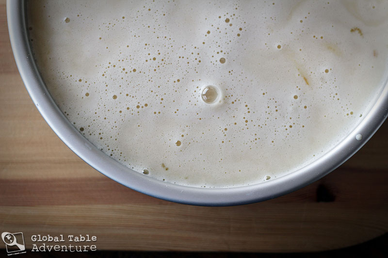 5. Take the dough and press it into a greased and floured 8" cake pan.