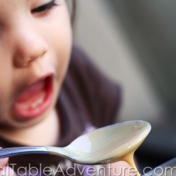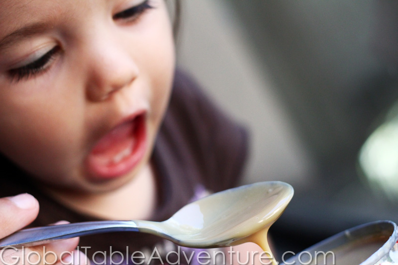Remove label from can of sweetened condensed milk and pierce with two holes on the top. Note that my label is still on the can. This becomes a mess later and I wouldn’t recommend it.