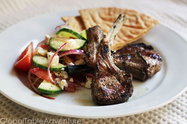 The lamb is seasoned with rosemary, oregano lemon juice, olive oil, and garlic.