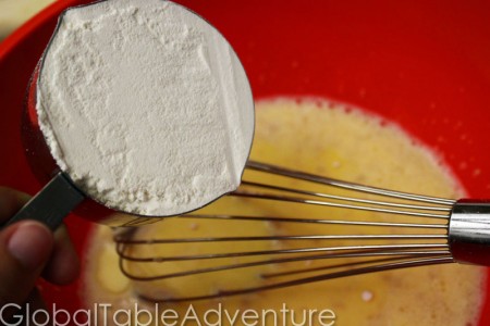 2. Add everything to a large bowl, stirring until all is combined. Add enough flour so that the ham doesn't sink.