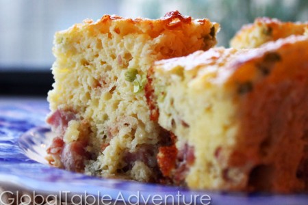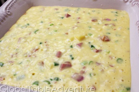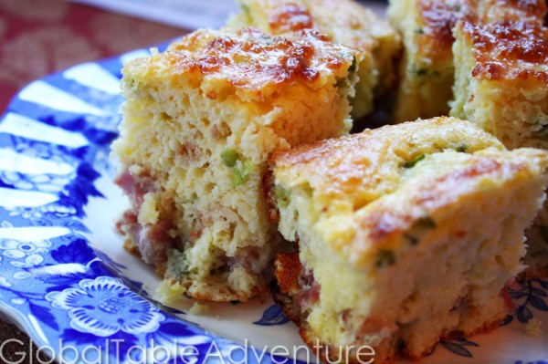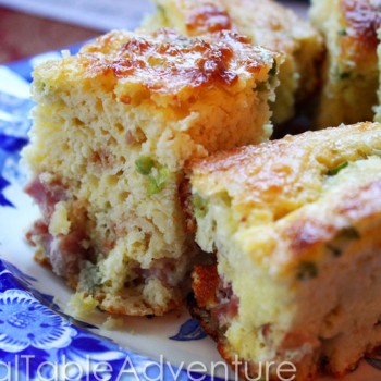 Breakfasty, bready prisnats are great comfort food. You’ll want to cut the ham smaller or add more flour so the little pieces won’t sink to the bottom. Enjoy warm!