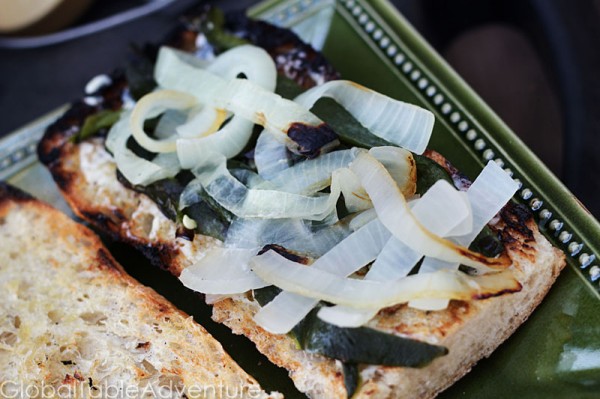1 onion, sliced and grilled (I grilled in foil with olive oil)