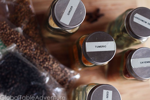 Gather your gorgeous spices. Even with 45 spice jars, I’ve run out of room and bags of spices have begun breeding in my cabinets. Time to add a few more jars to the collection…