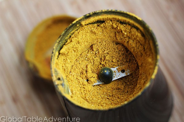 Once the spices are toasted, pour them into your spice grinder and pulse until a fine powder forms.