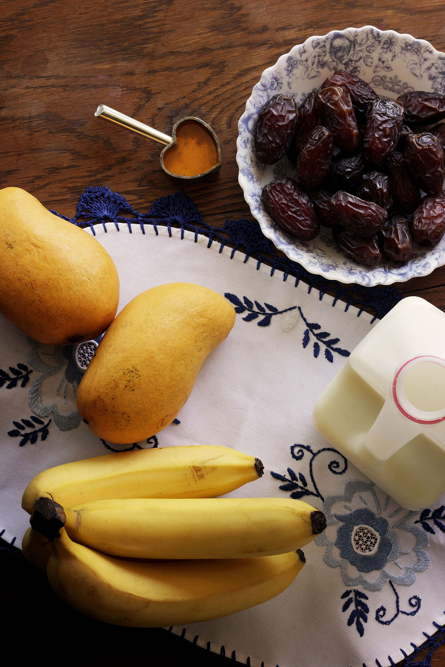 Inside you’ll find everything sweet and nutritious: mango, banana, dates, milk and honey…