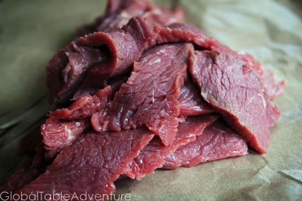 Now, let’s get the beef ready. Slice it thinly, against the grain.