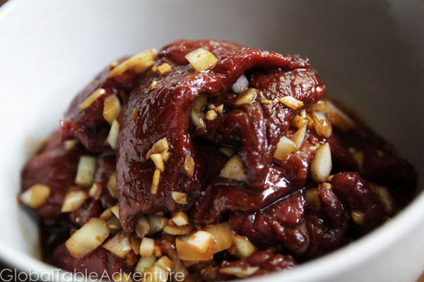 1-2 lbs beef (I used sirloin), sliced thinly against the grain
