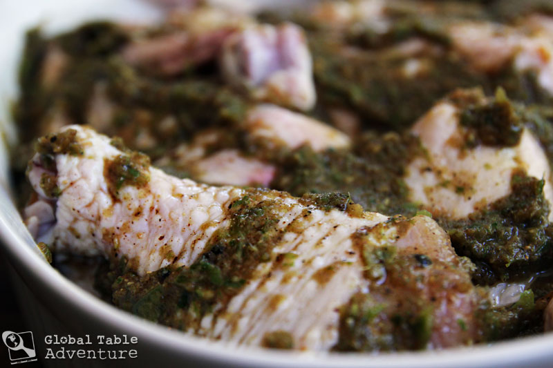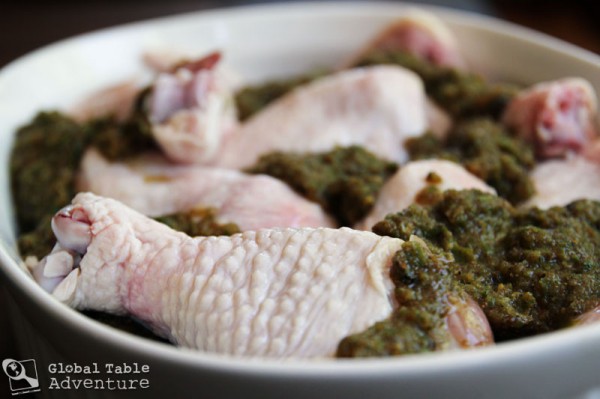 To get the most flavor, marinate the chicken pieces for two days. Just toss with about 1 1/2 cups of Jerk marinade and give a mix once or twice (using gloves).