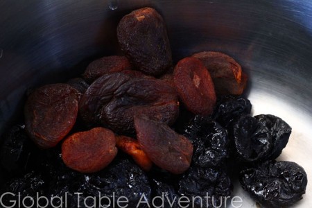 Next, the dried apricots. This particular brand is organic. I’ve never seen such dark, sultry apricots before – they look like fireplace embers, right before they burn out.