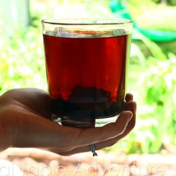 The mixture cooks up into an opaque black drink that needs to be watered down. Use ice, so you can drink it faster!