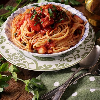 - Finish with capers and parsley.