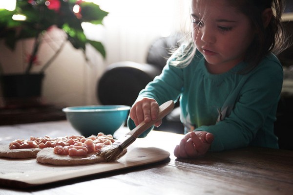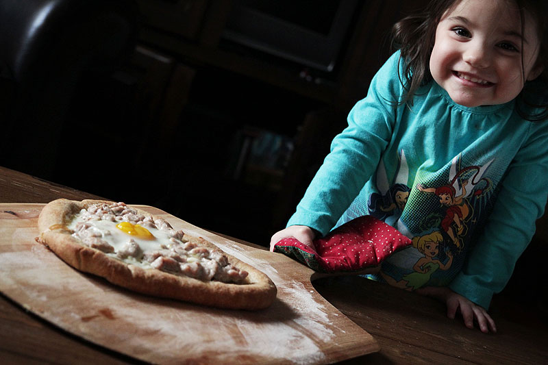The air buzzes with excitement. Ava pats the dough and we’re on our way to Macedonian pizza (Pastrmajlija), an addicting combination of diced pork, olive oil, and cracked eggs.  Together, her little hands next to my big hands, we shape the pizza two ways -first in a traditional full-moon circle and then in a Valentine’s-inspired heart. While some might say the shapes taste the same, I beg to differ. Anything heart-shaped tastes infinitely better than that same thing not heart-shaped.