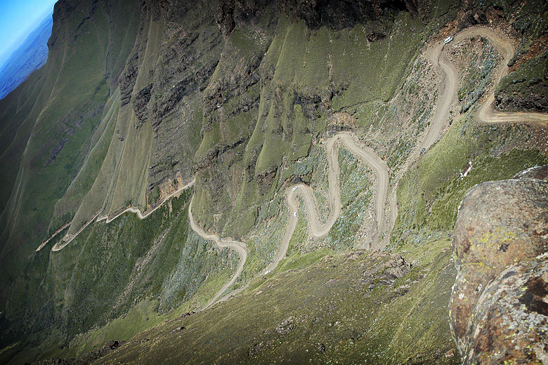 Take a drive through Lesotho. Enjoy the scenery. Try not to get vertigo (see that tiny white bus?) …
