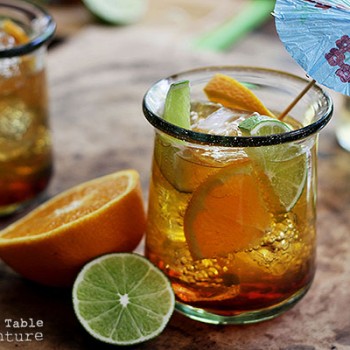 I just learned about Chapman – a bright, bubbly festival for your mouth. This is a Nigerian drink made for parties – supposedly invented by a Nigerian bartender named Chapman and, although I wasn’t able to find any solid facts on the history, I like the idea that there is a real live person behind the drink. There are as many variations as there are bubbles in Chapman. The general idea is to mix orange soda (traditional would be fanta) with a lemon/lime soda (like sprite). I went with natural izze sodas and later made a version with san pelligrino. Both tasted bright and zesty. Perhaps the most fun part of the drink is its rosy color, which can be added with either black current syrup or non-alcoholic grenadine. Grenadine will make the drink bright pink, while cassis will color the Chapman dusty rose. For a bit of beauty and juicy flavor – add a handful of sliced fruit – I used sweet orange and lime moons, although I’ve seen versions with banana slices, cucumber, or even pineapple pieces. The finishing touch is a splash of angostura bitters, which lends a nice woodsy flavor. From what I’ve read, while the soda flavors can change up a bit (all orange or all lime, for example), a Chapman is not a Chapman without the bitters.