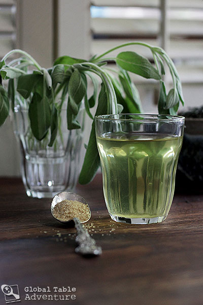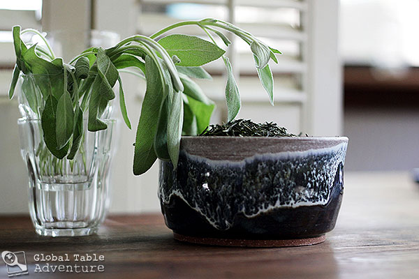 a small bundle of sage leaves. I started with 3 leaves and eventually added 9 for more robust flavor.