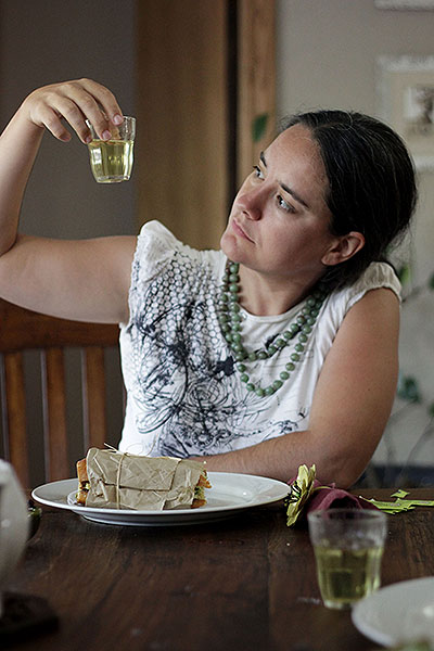 All you do is splash hot water over green tea and…