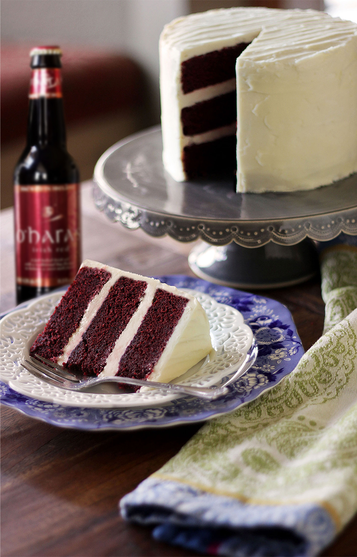Irish Red Velvet Cake is as cheery as a wee leprechaun's cheeks and as fiery as his beard. The crimson batter contains a dusting of cocoa and is bound with buttermilk - both characteristics of a traditional Red Velvet Cake, popular in the American South. But a few glugs of O'Hara's Irish Red Ale gives this otherwise ordinary cake Celtic edge.