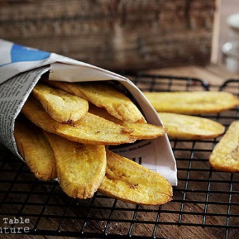 While it’s not necessary, plantains benefit from a little pre-soak in cold water for 15 minutes (like French fries). This will remove excess starch and help crisp up the plantain chips.