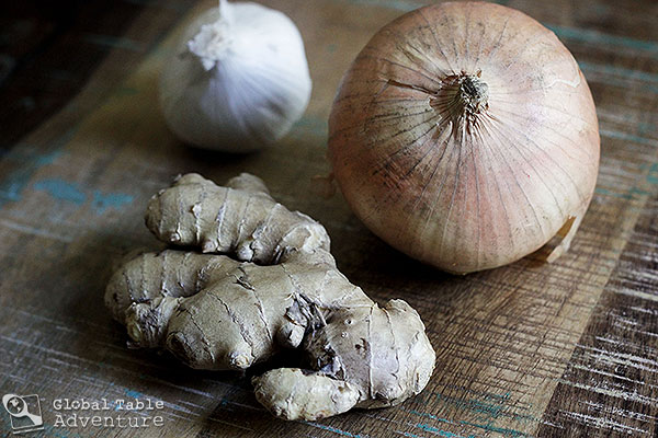When the last tail flicks out of sight, saute onions in vegetable oil until soft. Add crushed garlic and grated ginger. Cook for another moment, until the fragrance floods your home and heart.