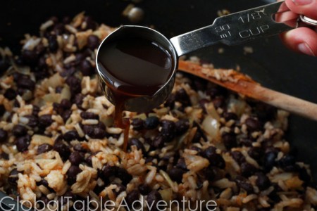 Next, a little Costa Rican flavor – sprinkle in the Worcestershire sauce. (And don’t forget the salt and pepper)