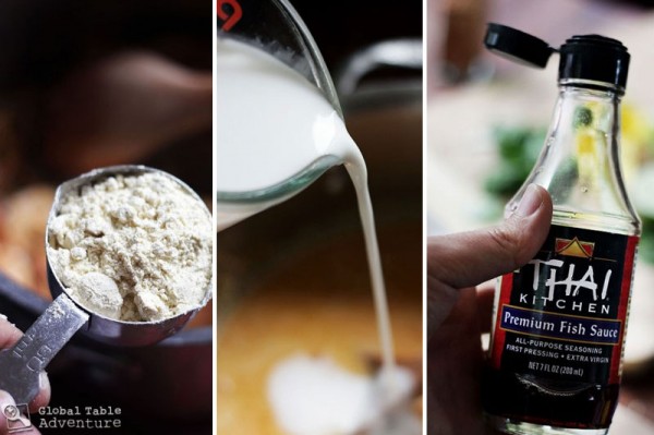 Pour on stock, coconut milk, and fish sauce – instead of salt (I used quite a bit since my chicken stock is low sodium).