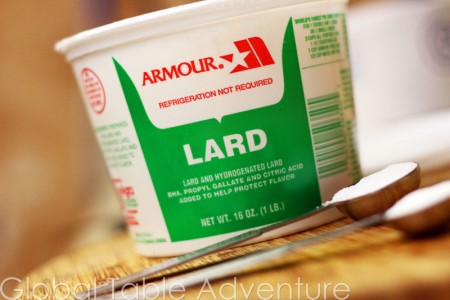 Lard gives the dough rich fatty flavor, but shortening is okay too.