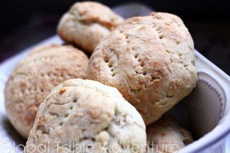 A cross between a yeast roll and a biscuit, pan amasado has a crispy exterior and slightly doughy interior.