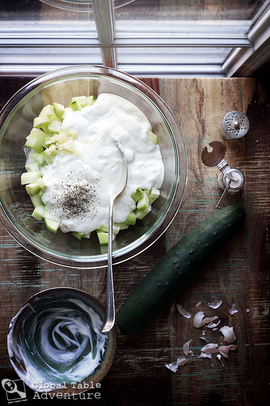 A cucumber salad is a thing of beauty. It cools, it refreshes, and it provides important nutrition thanks to a happy scoop of yogurt and tons of fiber from the cucumber (not to mention garlic’s anti-vampire qualities). While cucumber salads span the globe in one form or another, this version is popular through the Middle East, western Asia, and even parts of Europe (with minor variations).