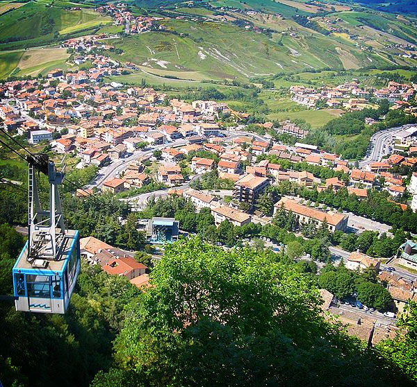 Aerial tramway gondola travels between San Marino city and Borgo Maggiore. Photo by Vladimir Menkov.