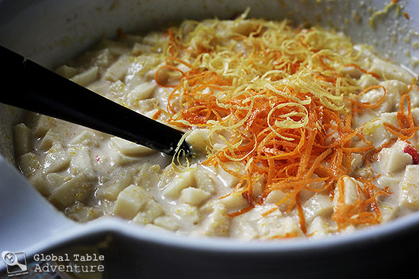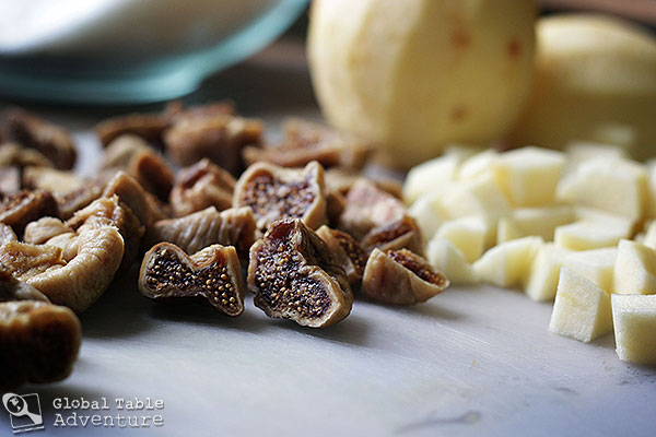 Finally, stir in 8 oz of chopped figs, the apples, orange and lemon zests. Combine well.