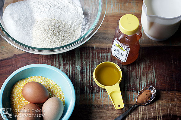 - Use a very large bowl. Whisk together all of the dry ingredients (polenta, flour, breadcrumbs, sugar, salt, cinnamon). Next, stir in the eggs, oil, and honey. Lastly, mix in the milk, stirring to form a smooth batter.