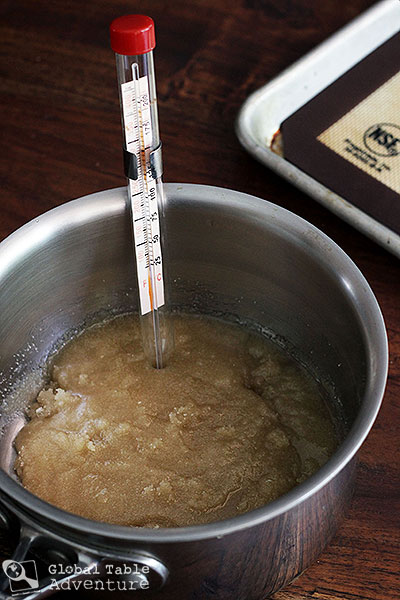 In my reading, I found that many people have trouble making this sweet treat, even though there are only three ingredients. As with any candy making, a good candy thermometer is a great idea, although I double checked my reading by dropping the candy into a bowl of ice water and found that to be more reliable.