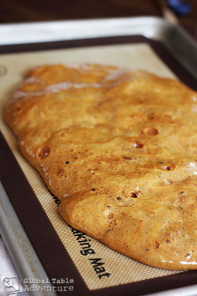 P.S. You don’t want it to overflow. If it gets close, pour gently and with no hesitation onto your lined baking sheet (I used silpat).
