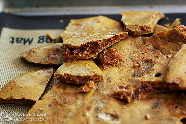 Traditional recipes use golden syrup, but since I don’t have any of that, I used honey which gave the hokey pokey the most incredible, buzz-worthy flavor and just about turned me into a honey bee. Friends at my writer’s group suggested it tastes somewhat like peanut brittle without the peanut. All the tiny air holes make it crunch like a wafer, though.