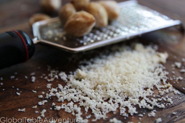 When you’re good and tired out, grate the candle nut into candle nut snow. Fluffy. Pretty. Candle nuts used to be used to make candles. They also add a creamy texture to sauces and curries.