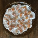 3. Fill 1-2 large casseroles (a lasagna pan works nicely) with the 1/2 coating mixture (confectioners sugar and cornstarch). Lay out the Turkish Delight carefully, leaving at least 1/4″ between each candy. Cover with remaining 1/2 of the coating mixture.