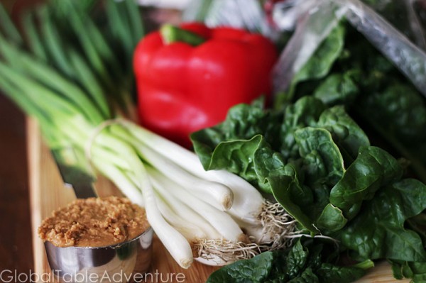 Look at these green onions and the healthy, sultry spinach.