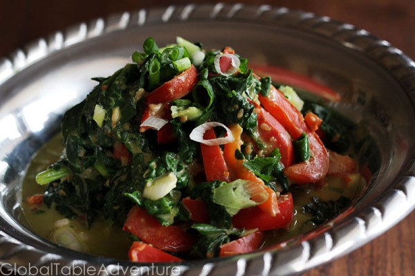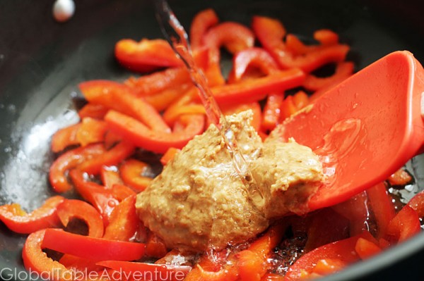 I’m not sure why this idea seemed so strange to me. West Africans love greens with peanut butter (they call them groundnuts), and I should have never doubted them. The earthy peanuts stand up to the mighty bitter spinach. It balances out nicely with the sweet peppers, but spicy would work wonderfully as well.
