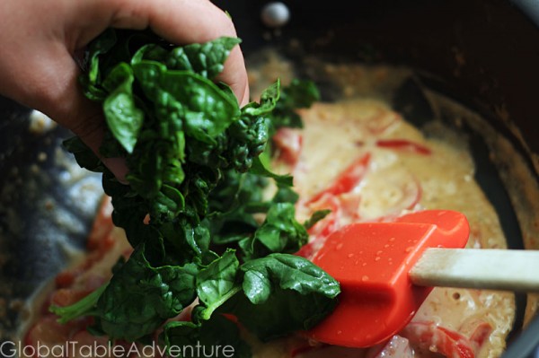 Next, toss in the sultry spinach.